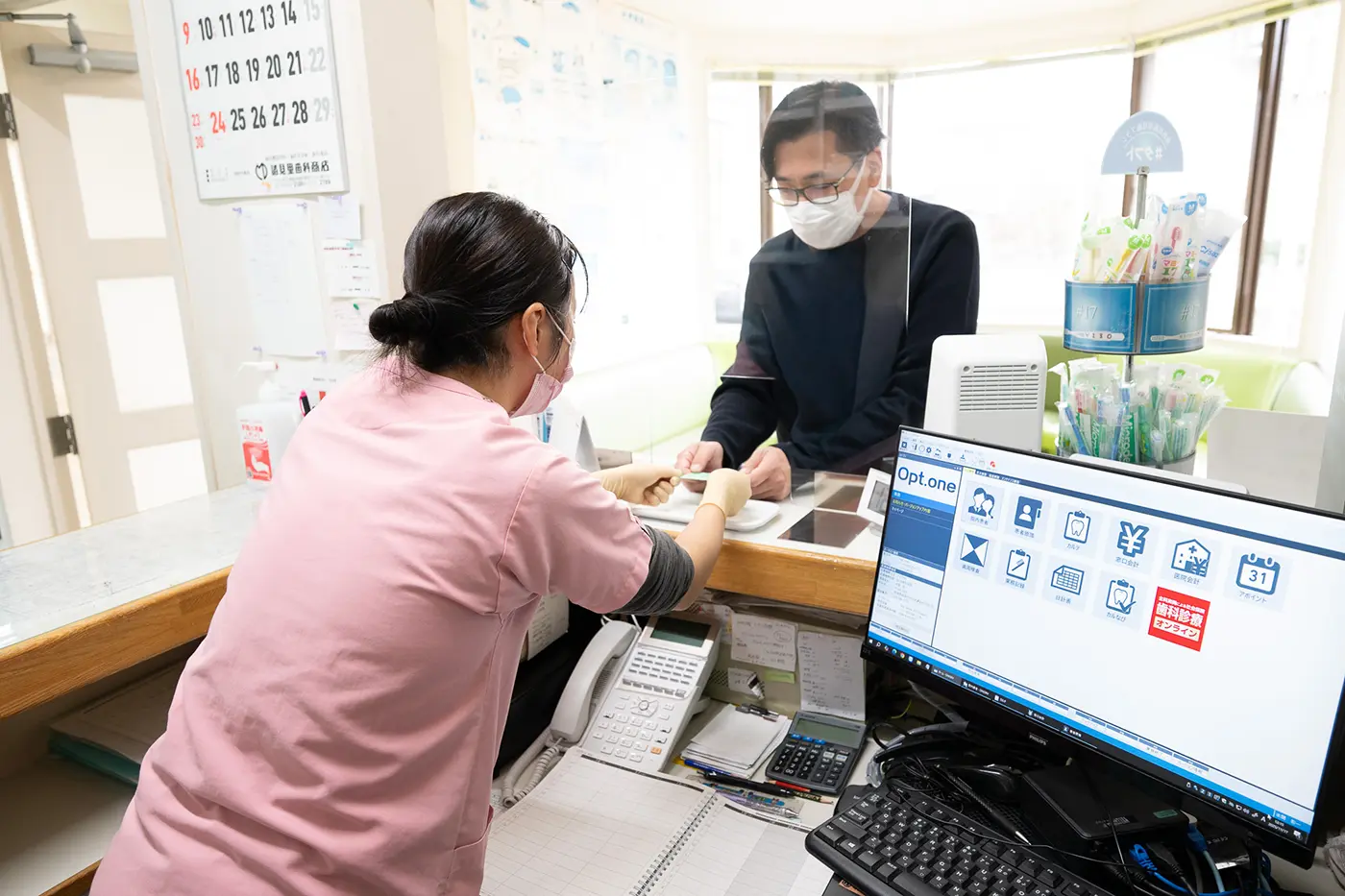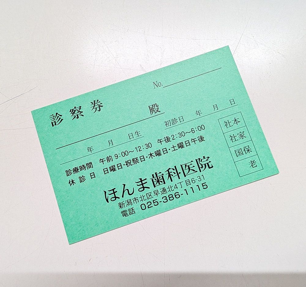 保険証をお預かりし、コピーを取らせていただきますので、その間に問診票のご記入をお願いいたします。