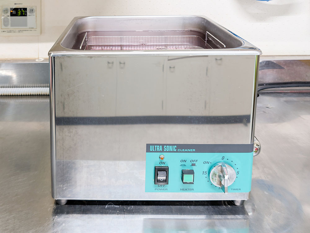 通常の洗浄では落としきれない、細かな汚れを引きはがすのに効果的です。使用後の器具を消毒液の中に入れ、超音波洗浄器を使用することで、洗浄・消毒効果がより高まります。